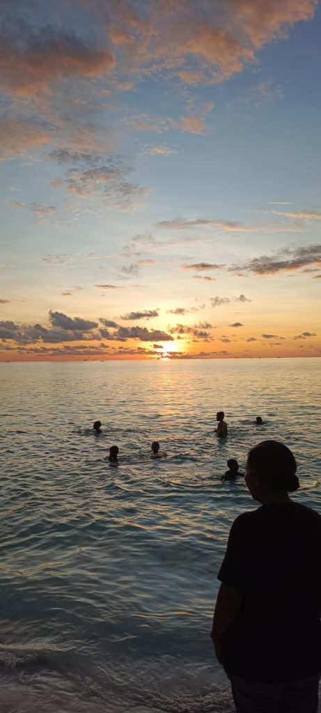 Selain Pasir yang halus, air laut yang cukup tenang, dangkal, bening dan bersih membuat kita akan betah berlama-lama sampai melihat matahari terbenam / Sunset yang cukup menggoda untuk di nikmati.